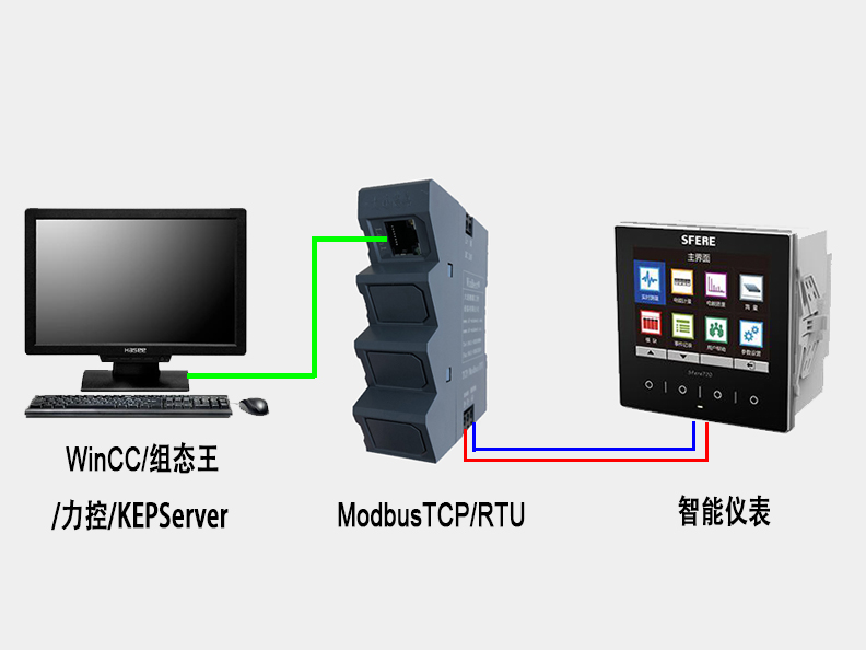 通過ModbusTCP/ModbusRTU,可將帶有ModbusRTU協(xié)議(RS485)通訊的設(shè)備,如:智能儀表、PLC、變頻器等直接與上位機(jī)通訊。