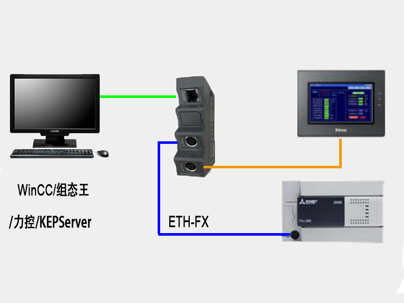 通過ETH-FX,可將三菱FX系列PLC,如:型號FX1N/1S/2N/3S/3G/3GC/3U/3UC 轉(zhuǎn)成以太網(wǎng),直接與上位機(jī)通訊。